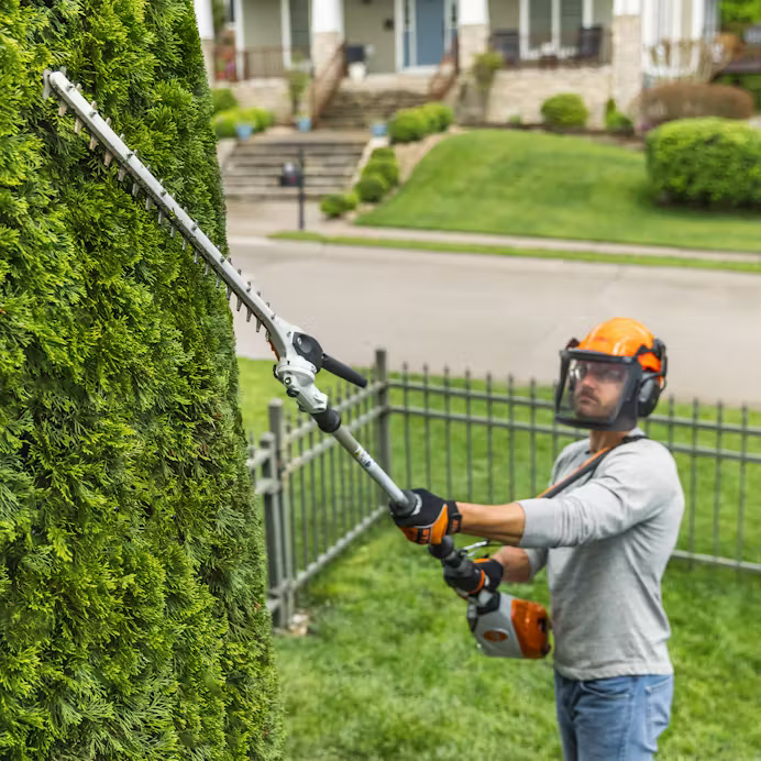 For professionals seeking optimal control and uncompromising performance in a battery-powered tool, the HLA 135 K (145°) extended-reach hedge trimmer delivers with 12 cutting positions to maximize adaptability. This trimmer lets you enjoy the clean, quiet benefits of battery-powered equipment without compromising performance and durability—thanks to zero exhaust emissions and low noise. Built using the same shaft, gearbox, and blades as found on its gas counterpart, this battery hedge trimmer combines a proven, durable weather-resistant design with a variable-speed trigger and three performance levels, allowing you to take on jobs with the versatility and performance your work demands. The powerful brushless motor is virtually maintenance free. The onboard battery slot can support either an onboard battery or a backpack battery for even longer run times. Take on the job with the HLA 135 K (145º) short-shaft, extended-reach battery-powered hedge trimmer.