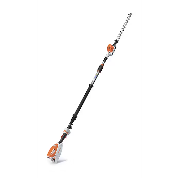 When the job seems just out of reach, the powerful and versatile HLA 86 extended-reach hedge trimmer delivers. Built using the same durable outer shaft as its gas-powered counterpart, this hedge trimmer provides professional-grade performance with the green benefits of battery power. The quiet, battery-powered operation is great for working in noise-restricted environments, and the brushless motor offers the added benefit of zero exhaust emissions. Easy to extend—thanks to its toolless design—the HLA 86 can telescope an additional 27.6", bringing you within reach of jobs that might otherwise be inaccessible. The -45-degree to +70-degree articulating head with 20-inch cutter bar delivers versatility with seven different positions, while the brushless motor and variable-speed trigger provide the professional power and control you demand to get the job done right.