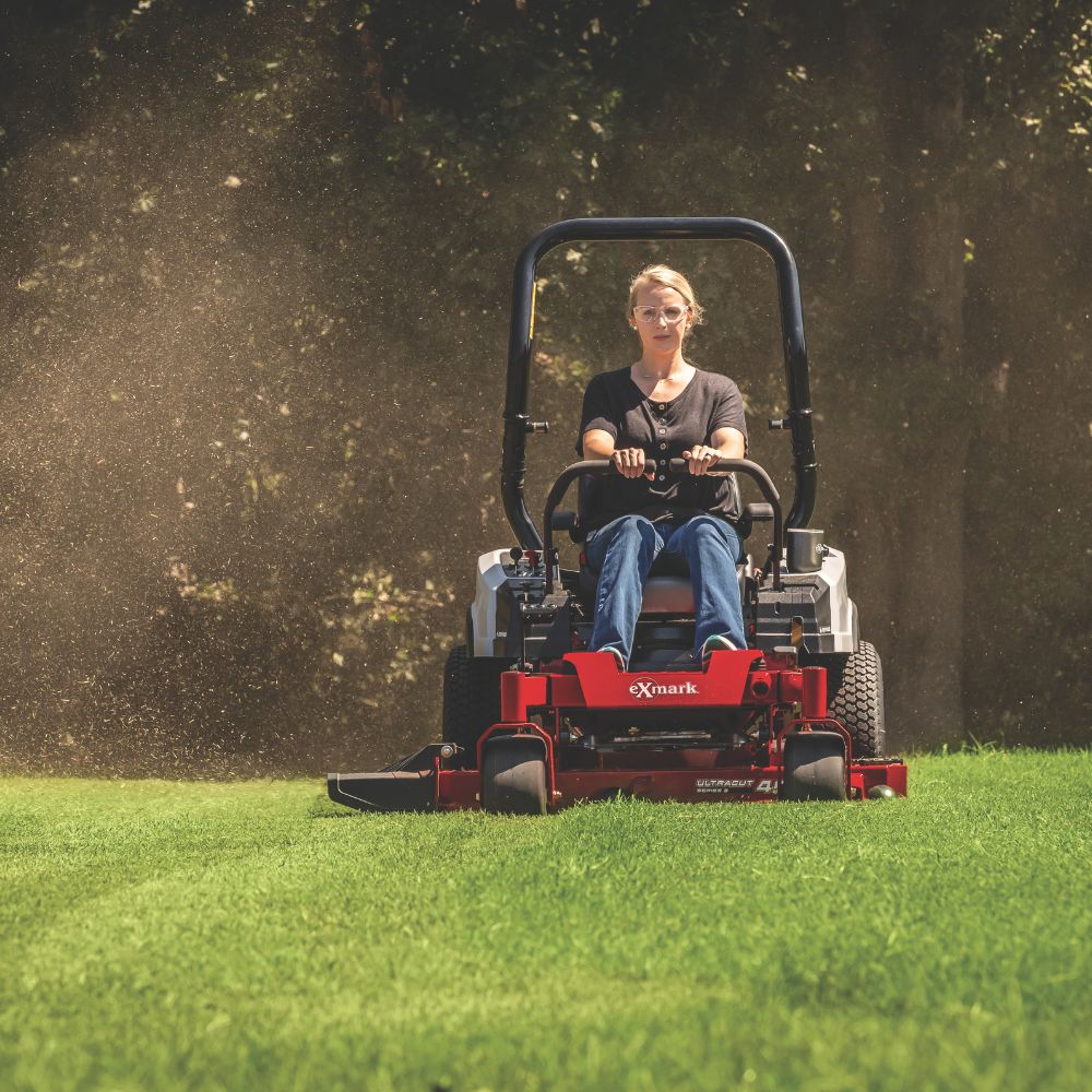 RADIUS E SERIES ZERO TURN MOWER, POWERED BY A 24.5 HP* EXMARK V-TWIN 708CC ENGINE AND ULTRA CUT SERIES 3, 52" DECK WIDTH. UP TO 3.35 ACRES / HOUR
